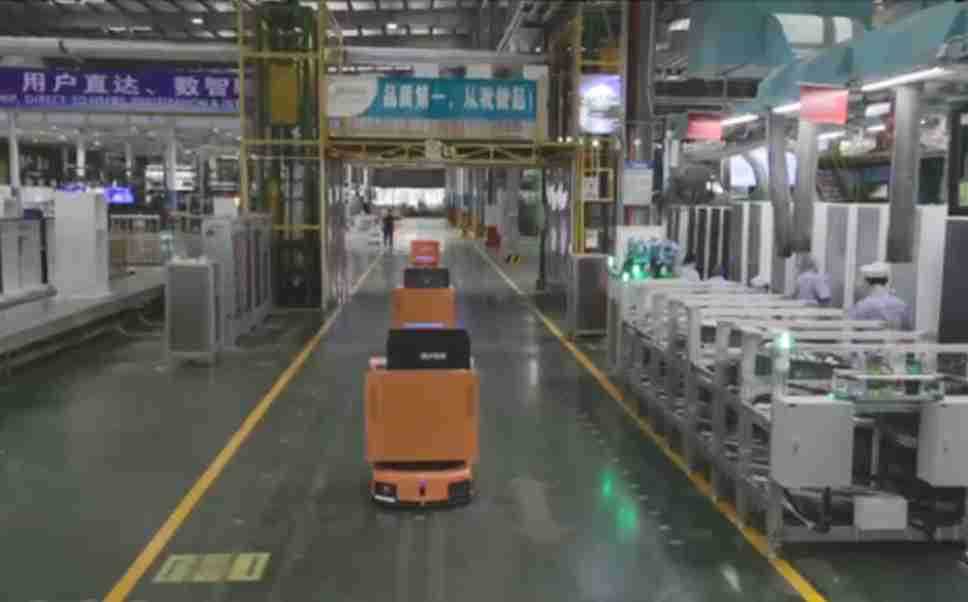 为车载冰箱物流配送打造的智能解决方案,,包含产中物流通过潜伏举升AMR搬运至线边,,,产后成品物流智能仓储,,,流程包含产中物流智能齐套入库,,线边安灯叫料AMR智能配送至线边,,成品入库、、、、出库,,,,通过无人堆高车机器人,,,,智能仓储管理替代人工作业管理,,,实现更高存储、、、更高效率、、、、更具柔性化的解决方案。。。